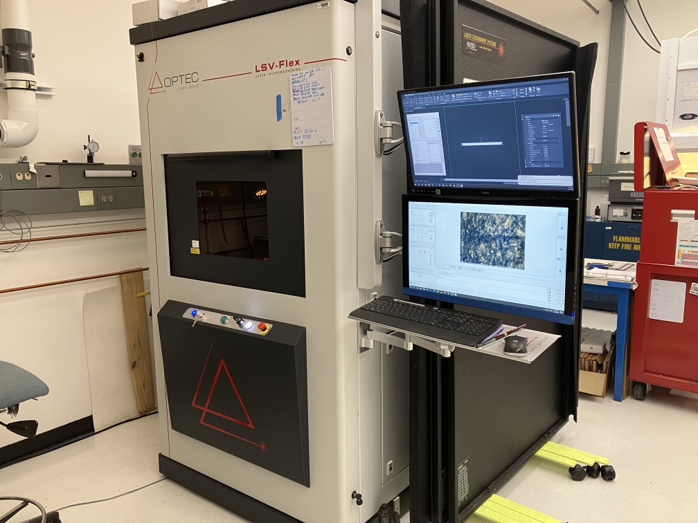 The Georgia Tech Optec Femtosecond laser is an OPTEC WS-Flex USP system that uses a femtosecond laser to process practically any material through ultra-short laser pulses photo-ablation. The ultra-short laser pulse is effective on polymers, metal, ceramics, glass, single crystals, and polymorphic crystals. Materials are ionized by the laser pulse and removed from the surface in a plasma cloud, leaving a clean surface at the interaction site. Contrary to typical thermal laser operations, the femtosecond laser is not as sensitive to wavelength absorption and therefore offers minimum thermal, creating a no heat-affected zone on the part.